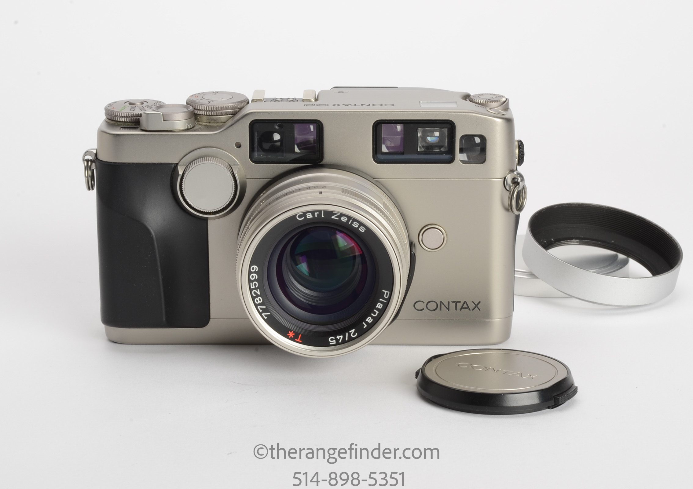 - Contax G2 35mm AF Rangefinder Camera w/45mm f2 Zeiss Planar G Lens.